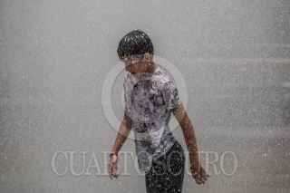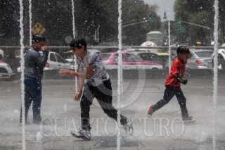 CIUDAD DE MÉXICO, 04AGOSTO2020.- Con la reapertura de parques y calles principales del Centro Histórico; familias aprovechan las fuentes de la Plaza Tlaxcoaque para llevar a los infantes a refrescarse de las altas temperaturas que imperan las tardes en la Ciudad. FOTO: ANDREA MURCIA /CUARTOSCURO.COM