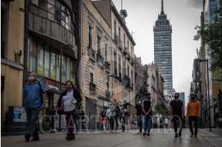 CIUDAD DE MÉXICO, 04AGOSTO2020.- A un mes de que el gobierno de la Ciudad declarara el cambio de semáforo rojo a naranja y con esto la reapertura de calles y comercios manera ordenada, capitalinos aprovechan el Centro Histórico para visitarlo de manera turística y realizar sus compras. Elementos de seguridad continúan vigilando la calles en especial Madero, para evitar aglomeraciones y llamara a la población al uso del cubrebocas. FOTO: ANDREA MURCIA /CUARTOSCURO.COM