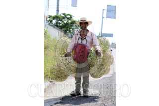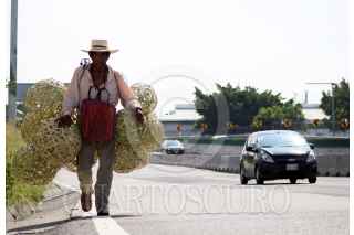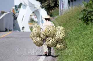 CUERNAVACA, MORELOS, 05AGOSTO2020.- Cristóbal Rosales García, originario de Cuetzalan del Progreso, Guerrero, camina por el acotamiento del Paso Exprés cargando la mercancía que vende. El hombre de la tercera edad, vende lámparas redondas elaboradas con bambú, las de mayor tamaño las comercia en 100 pesos y las chicas en 50. Este hombre es uno de los millones de mexicanos que sin importar el esfuerzo que hace, sale a buscar el sustento para volver a casa con algunos pesos para sobrevivir. Entre los riesgos, está el caminar a la orilla del Paso Exprés. FOTO: MARGARITO PÉREZ RETANA /CUARTOSCURO.COM
