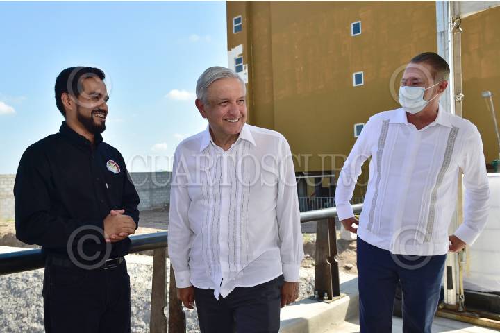 CULIACÁN, SINALOA, 05AGOSTO2020.- Andrés Manuel López Obrador, Presidente de México, encabezó la supervisión de los trabajos de revestimiento del Dren Bacurimí. Lo acompañaron Quirino Ordaz Coppel, gobernador de la entidad, y Blanca Elena Jiménez Cisneros, titular de Conagua. FOTO: PRESIDENCIA/CUARTOSCURO.COM