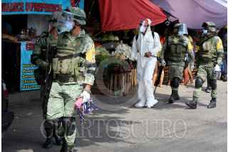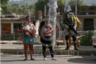 ACAPULCO, GUERRERO, 05AGOSTO2020.- Soldados del Ejercito Mexicano durante un operativo de seguridad y sanitizacion en colonias de la periferia de Acapulco. FOTO: CARLOS ALBERTO CARBAJAL/CUARTOSCURO.COM