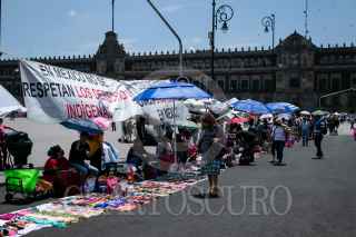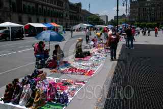 CIUDAD DE MÉXICO, 05AGOSTO2020.- Artesanos indígenas que sostienen un plantón en las inmediaciones del Zócalo. Han comenzando la venta de diversos productos: ropa, cubrebocas, comida y artesanías para obtener algo de ingreso ante la pandemia por Covid-19. Los inconformes reclaman que el gobierno no ha respetado los acuerdos, así como tampoco ha otorgado apoyos. FOTO: GALO CAÑAS /CUARTOSCURO.COM