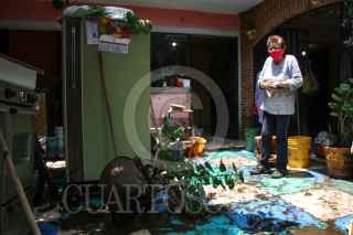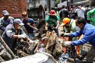 CIUDAD DE MEXICO, 05AGOSTO2020.- Al menos una docena de casas resultaron afectadas debido al desbordamiento del Río Santiago, ubicado en las colonias Santiago y Arenal de la alcaldia Xochimilco. Desde tempranas horas los vecinos de esta colonia se dieron a la tarea de sacar el agua y lodo de sus casas con el objetivo de recatar la mayor parte de los artículos que se vieron afectados. FOTO: ROGELIO MORALES /CUARTOSCURO.COM