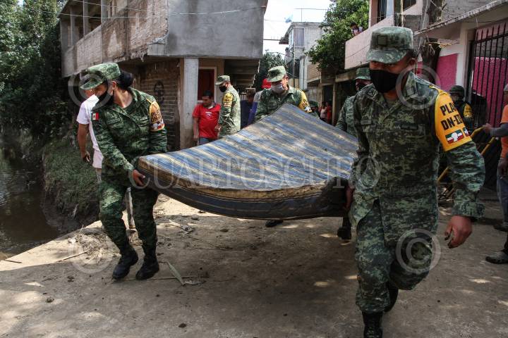 CIUDAD DE MEXICO, 05AGOSTO2020.- Elementos del ejército y la Guardia Nacional arribaron a la colonia San Mateo para realizar labores de limpieza y a poyo a vecinos de la alcaldía Xochimilco, esto tras del desbordamiento del río Santiago, el cual dejó severas afectaciones en viviendas y calles de dicha colonia. FOTO: ROGELIO MORALES /CUARTOSCURO.COM
