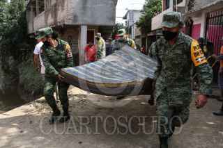 CIUDAD DE MEXICO, 05AGOSTO2020.- Elementos del ejército y la Guardia Nacional arribaron a la colonia San Mateo para realizar labores de limpieza y a poyo a vecinos de la alcaldía Xochimilco, esto tras del desbordamiento del río Santiago, el cual dejó severas afectaciones en viviendas y calles de dicha colonia. FOTO: ROGELIO MORALES /CUARTOSCURO.COM