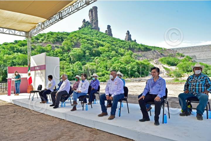 ÁLAMOS, SONORA, 05AGOSTO2020.- Andrés Manuel López Obrador, presidente de los Estados Unidos Mexicanos presidió la inauguración de la Presa Bicentenario “Los Pilares” en el Río Mayo, localidad de San Bernardo. Lo acompañó Claudia Pavlovich Arellano, Gobernadora de Sonora. FOTO: PRESIDENCIA/CUARTOSCURO.COM