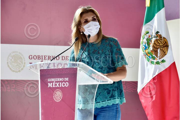 ÁLAMOS, SONORA, 05AGOSTO2020.- Andrés Manuel López Obrador, presidente de los Estados Unidos Mexicanos presidió la inauguración de la Presa Bicentenario “Los Pilares” en el Río Mayo, localidad de San Bernardo. Lo acompañó Claudia Pavlovich Arellano, Gobernadora de Sonora. FOTO: PRESIDENCIA/CUARTOSCURO.COM