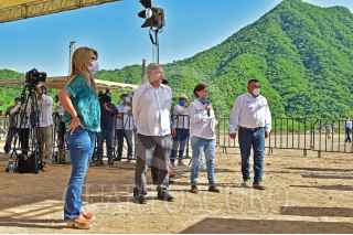 ÁLAMOS, SONORA, 05AGOSTO2020.- Andrés Manuel López Obrador, presidente de los Estados Unidos Mexicanos presidió la inauguración de la Presa Bicentenario “Los Pilares” en el Río Mayo, localidad de San Bernardo. Lo acompañó Claudia Pavlovich Arellano, Gobernadora de Sonora. FOTO: PRESIDENCIA/CUARTOSCURO.COM