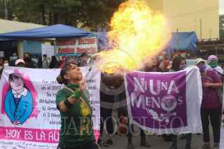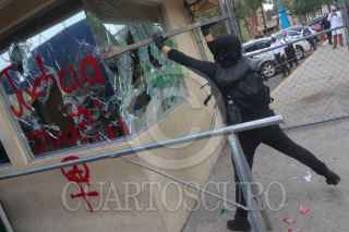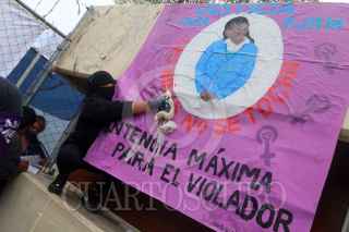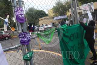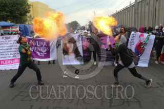 CIUDAD DE MÉXICO, 06AGOSTO2020.- Mujeres integrantes de los colectivos Ni una menos México, Ni una Chuy Menos y Resistencia Anarkojurásica se manifiestan afuera del Reclusorio Oriente para exigir justicia por el caso de la niña Judith, quien fue víctima de abuso sexual en 2017, luego de que se citará en Segunda Audiencia al agresor de Judith, menor de edad. Durante la protesta colocaron pañuelos en las entradas del penal y rompieron vidrios exigiendo justicia en el caso. FOTO: GRACIELA LÓPEZ /CUARTOSCURO.COM