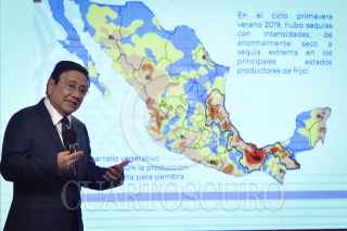 CIUDAD DE MÉXICO, 06AGOSTO2020.- Víctor Villalobos, desarrollo de Agricultura y Desarrollo Rural; Luisa María Alcalde, secretaria del Trabajo y Previsión Social, e Ignacio Ovalle, director General de Seguridad Alimentaria Mexicana, durante conferencia de prensa en la que se ofrecieron detalles del programa “Precios de Garantía”. FOTO: MARIO JASSO /CUARTOSCURO.COM