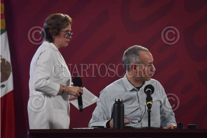 CIUDAD DE MÉXICO, 06AGOSTO2020.- Hugo López-Gatell Ramírez, Subsecretario de Prevención y Promoción de la Salud, en compañía de Miralda Aguilar Patraca, titular de la Oficina de Representación en el Estado de México Poniente; Anabelle Bonvecchio, Directora de Políticas y Programas de Nutrición en Instituto Nacional de Salud Pública y Catalina Gómez, jefa de política social Unicef México en protección social, nutrición y bienestar de la infancia, durante el informe diario sobre la pandemia de coronavirus (covid-19) en el país. La actualización indica que el país ha alcanzado los 462 mil 690 casos confirmados acumulados y 50 mil 517 personas que han fallecido a causa de esta enfermedad. FOTO: MARIO JASSO /CUARTOSCURO.COM