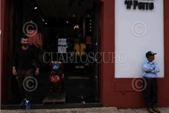 SAN CRISTÓBAL DE LAS CASAS, CHIAPAS, 08AGOSTO2020.- Los andadores principales del centro de la ciudad retoman el movimiento habitual dentro de la “nueva normalidad”. El municipio se mantiene en semáforo naranja dentro de los parámetros aplicados por el gobierno federal de acuerdo al avance de los contagios por Covid 19, el estado de Chiapas ha registrado 5,757 pacientes contagiados y 482 defunciones a causa de Coronavirus. FOTO: ISABEL MATEOS /CUARTOSCURO.COM