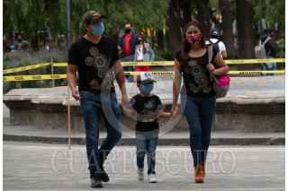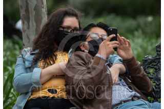 CIUDAD DE MÉXICO, 08AGOSTO2020.-El cambio de semáforo rojo a naranja permitió la reapertura del Centro Histórico. Parejas aprovechan la oportunidad para ir a caminar a la plancha del Zócalo, sentarse en las bancas de la Alameda Central o recorrer el Centro Histórico. FOTO: ANDREA MURCIA/CUARTOSCURO.COM