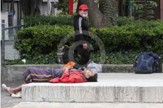 CIUDAD DE MEXICO, 08AGOSTO2020.- El empleo informal se vio aumentado en un 51%, esto según cifras del INEGI, dicho aumento se debido al desempleo ocasionado por la pandemia de COVID-19. De la misma forma el gobierno de la ciudad tenía conocimiento hasta 2019 de cerca de 4 mil 500 personas en situación de calle, cifra que se espera se vea incrementada para finales del presente año. En imágenes, dos menores menores trabajan vendiendo diversos productos en las calles de la alcaldía Coyoacán. Un hombre duerme, mientras otro más mira, esto en avenida Miguel Ángel de Quevedo. FOTO: ROGELIO MORALES /CUARTOSCURO.COM