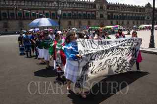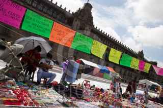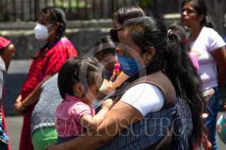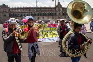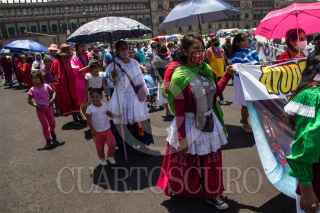 CIUDAD DE MÉXICO, 09AGOSTO2020.- Artesanos indígenas que llevan más de un mes en plantón frente a Palacio Nacional realizaron una marcha para exigirle al gobierno capitalino; proyectos de vivienda, que los deje vender en el primer cuadro sin que los estén hostigando la policía, pero sobre todo respeto, ya que a decir de ellos esta administración se ha olvidado de las grupos indígenas del país, esto en el marco de la conmemoración del Día Internacional de Pueblos Indígenas. Los inconformes realizaron una marcha en el circuito del primer cuadro, fueron acompañados por una banda de viento ya que dijeron: "que si el gobierno no los festejaba, ellos mismos se festejan". FOTO: MOISÉS PABLO/CUARTOSCURO.COM