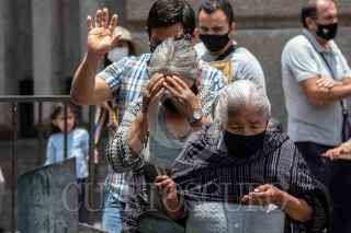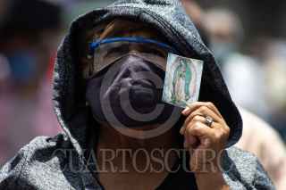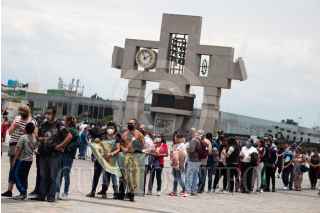 CIUDAD DE MEXICO, 09AGOSTO2020.- Feligreses celebran la misa dominical el exterior de la Basílica de Guadalupe, como medida sanitaria para evitar contagios por COVID-19. FOTO: MAGDALENA MONTIEL /CUARTOSCURO