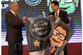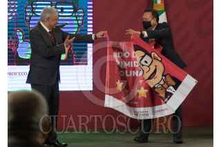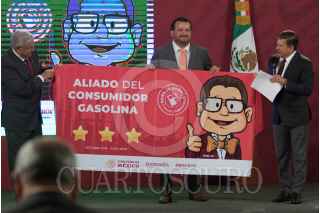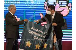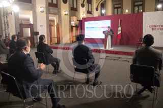 CIUDAD DE MÉXICO, 10AGOSTO2020.- Andrés Manuel López Obrador, primer mandatario del país, en su conferencia de prensa de todas las mañanas y acompañado de Ricardo Sheffield, titular de Profeco, entrego reconocimientos a empresarios Gasolineros y de compañías de Gas LP. Esto en el salón tesorería de Palacio Nacional. FOTO: VICTORIA VALTIERRA/CUARTOSCURO.COM