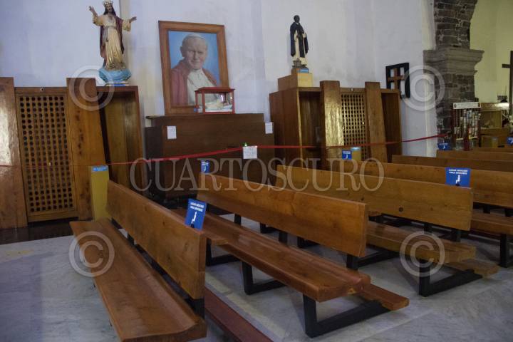 CIUDAD DE MÉXICO, 10AGOSTO2020.- Hoy abrió sus puertas para los medios de comunicación; el templo de Santiago Ápostol, iglesia que se encuentra en el corazón de l Plaza de las Tres Culturas de Tlatelolco. Tienen 8 días que abrieron sus puertas con todos los protocolos sanitarios. FOTO: VICTORIA VALTIERRA/CUARTOSCURO.COM