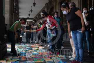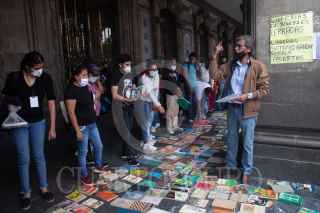 Capitalinos revisaron libros que estaban regalando los vendedores de las Librerías de Donceles, las cuales no han podido reanudar sus actividades