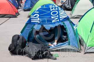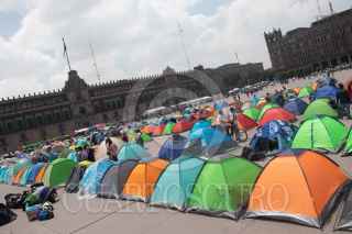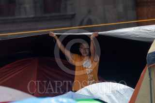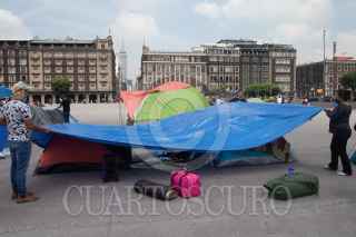 CIUDAD DE MÉXICO, 10AGOSTO2020.- Trabajadores de la Coordinadora Nacional de Trabajadores de la Educación (CNTE) arribaron con maletas y casas de campaña a la plancha del Zócalo para realizar un plantón indefinido en denuncia del adeudo de pagos, aseguran que piensan quedarse hasta recibir una respuestas a sus demandas de las autoridades. FOTO: GRACIELA LÓPEZ /CUARTOSCURO.COM