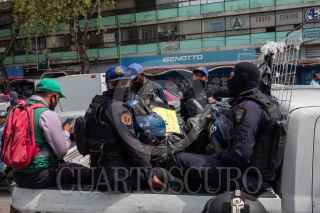 CIUDAD DE MÉXICO, 11AGOSTO2020.- Elementos de seguridad y trabajadores del Gobierno de la Ciudad, realizan operativos para retirar a vendedores ambulantes del Centro Histórico y Calles Aledañas. FOTO: ANDREA MURCIA/CUARTOSCURO.COM