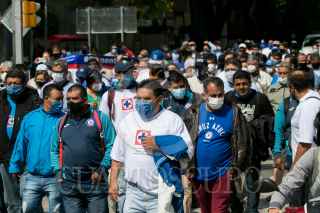 CIUDAD DE MÉXICO, 11AGOSTO2020.- Integrantes de la Cooperativa Cruz Azul se manifestaron en las instalaciones de la Fiscalía General de la República (FGR) para expresar su desacuerdo respecto a la decisión del juez de poner a disposición los bienes de la Cooperativa en la capital en manos de la Junta de Administración. Asimismo, los inconformes expresaron su apoyo a su presidente “Billy” Álvarez, quien se encuentra acusado de delincuencia organizada y operación con recursos de procedencia ilícita. Tras ser atendidos en la FGR, los cooperativistas marcharon con dirección a la Subprocuraduría Especializada en Investigación de Delincuencia Organizada (Seido). FOTO: GALO CAÑAS /CUARTOSCURO.COM