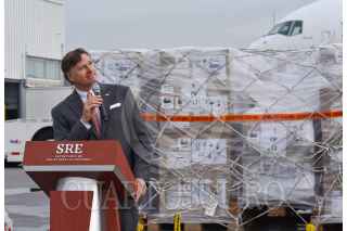 TOLUCA, ESTADO DE MÉXICO, 12AGOSTO2020.- Esta mañana arribó al Aeropuerto Internacional de Toluca (AIT) el décimo avión que transportó insumos médicos para México provenientes de Estados Unidos, con 92 ventiladores de 562 para pacientes con COVID-19. FOTO: CRISANTA ESPINOSA AGUILAR / CUARTOSCURO.COM