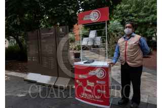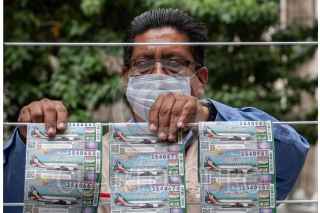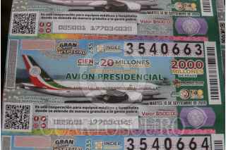 CIUDAD DE MÉXICO, 12AGOSTO2020.- Se instalo un módulo de venta de billetes de lotería del Avión presidencial. La venta de estos se había detenido por la crisis sanitaria del COVID-19, al pasar a semáforo naranja se reactivo, hasta la fecha solo se han vendido 2 millones 24 mil boletos, un 33% del total. El sorteo se llevara a cabo el 15 de septiembre; los boletos no vendidos serán donados a salud. FOTO: ANDREA MURCIA/CUARTOSCURO.COM