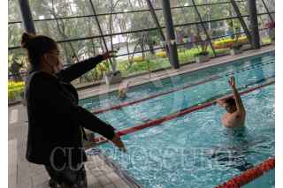 CIUDAD DE MÉXICO, 12AGOSTO2020.- Con el semáforo naranja y la baja en ocupación de camas en hospitales, el Gobierno de la Ciudad anuncio la reapertura de centros deportivos y albercas. A partir del lunes pasado se abrió al público el Centro Deportivo Venustiano Carranza ubicado en la Alcaldía con el mismo nombre. De tener afluencia de 65 personas por hora hoy se permitirán un máximo de 15. FOTO: ANDREA MURCIA/CUARTOSCURO.COM