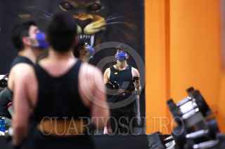PUEBLA, PUEBLA, 12AGOSTO2020.- Reapertura de gimnasios en Puebla, con medidas de prevención ante la pandemia por coronavirus, tales como mantener un aforo máximo del 30 por ciento, sanitizar los espacios constantemente y restringir el uso de cambiadores y sanitarios. Los usuarios del lugar tendrán que pasar por un filtro de seguridad y mantener el cubreboca durante toda su estancia. FOTO: MIREYA NOVO/CUARTOSCURO.COM