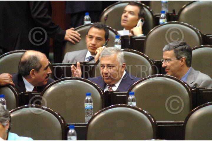 MÉXICO D.F. 18ABRIL2006.- Los diputados Pablo Gómez (PRD), Emilio Chuayffet (PRI) y José González Morfin (PAN), durante la sesión ordinaria de la Cámara de Diputados. FOTO: CUARTOSCURO.COM