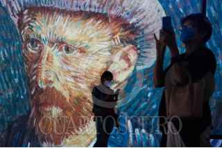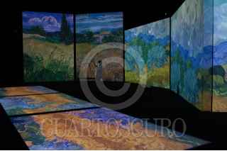 CIUDAD DE MÉXICO, 13AGOSTO2020.- La exposición Van Gogh Alive reabrió sus puertas adaptando las nuevas medidas de seguridad implementadas por las autoridades sanitarias de la ciudad ante la pandemia de Covid-19, como: el uso de cubrebocas obligatorio, repartición de gel antibacterial a los visitantes y mantener la sana distancia entre los visitantes, son las normas que hay que seguir para acceder a la galería virtual, donde en cada función solo podrá contar con 30% de su aforo. FOTO: DANIEL AUGUSTO/CUARTOSCURO.COM