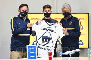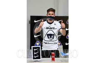 CIUDAD DE MÉXICO, 13AGOSTO2020.- Hoy fue presentado como refuerzo de los Pumas el mediocampista uruguayo Facundo Waller, quien proviene del equipo Plaza Colonia. El futbolista sudamericano tiene 23 años y ha sido seleccionado nacional de su país a nivel sub-20 y sub-23. El ingeniero Leopoldo Silva, presidente del Club Universidad, declaró: “Me complace mucho que Facundo haya aceptado venir a Pumas. Debo decir que el club lo ha venido siguiendo desde hace tiempo. Ha viso en él cualidades que seguramente vendrán a reforzar mucho a nuestro equipo. Ha destacado mucho en su país, Uruguay. En su juventud, ha sido representante permanente en las selecciones sub-20 y sub-23. Ha tenido actuaciones muy destacadas en diferentes torneos internacionales. Le doy la más cordial bienvenida al Club Universidad Nacional”. fOTO: CLUB PUMAS/CUARTOSCURO.COM