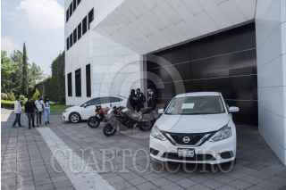 CIUDAD DE MÉXICO, 14AGOSTO2020.- Automóviles que serán subastados el próximo 16 de agosto comenzaron a llegar a las instalaciones del Complejo Cultural Los Pinos. La quinta subasta será organizada por el Instituto para Devolver al Pueblo lo Robado (INDEP) en el que se ofertará un total de 307 lotes de bienes inmuebles, así como tractocamiones, semirremolques, automóviles y motocicletas. FOTO: MARIO JASSO /CUARTOSCURO.COM