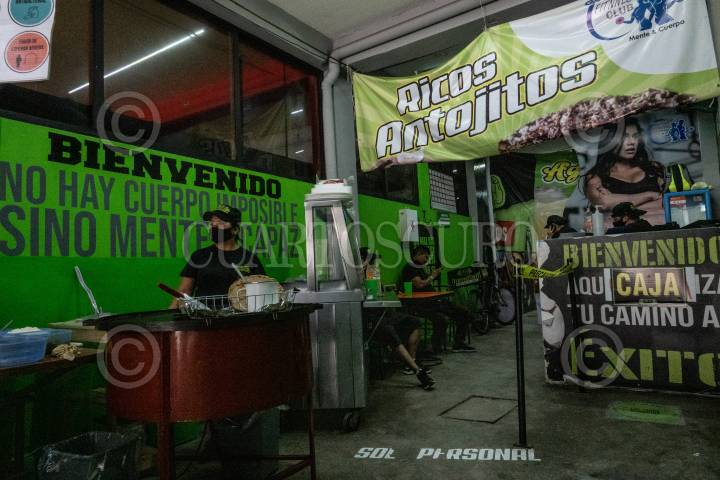 CIUDAD DE MÉXICO, 14AGOSTO2020.- La taquería Los mamados nace a partir de la crisis económica por el cierre de gimnacios como medida de prevención de la propagación del virus SARS-CoV-2. El edificio que en su normalidad es un gimnasio por ahora opera como taquerías atendida por los instructores y trabajadores del mismo, llamando la atención. Los mamados es uno de los miles de ejemplo del cambio de rubro de establecimientos en la nueva normalidad. La taquerías es operada por 17 personas con un horario de 10 am a 17 pm y se ubica en Lerdo 212. FOTO: ANDREA MURCIA/CUARTOSCURO.COM
