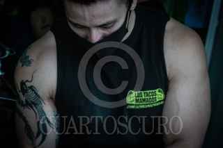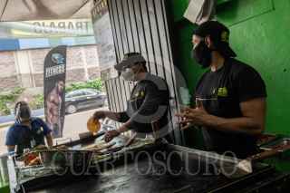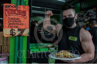 CIUDAD DE MÉXICO, 14AGOSTO2020.- La taquería Los mamados nace a partir de la crisis económica por el cierre de gimnacios como medida de prevención de la propagación del virus SARS-CoV-2. El edificio que en su normalidad es un gimnasio por ahora opera como taquerías atendida por los instructores y trabajadores del mismo, llamando la atención. Los mamados es uno de los miles de ejemplo del cambio de rubro de establecimientos en la nueva normalidad. La taquerías es operada por 17 personas con un horario de 10 am a 17 pm y se ubica en Lerdo 212. FOTO: ANDREA MURCIA/CUARTOSCURO.COM