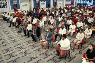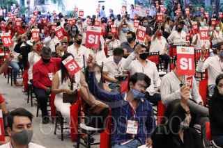 CUERNAVACA, MORELOS, 15AGOSTO2020.- Mas de cuatrocientos militantes del Partido del Trabajo se reunieron para llevar a cabo su Congreso Estatal Ordinario. El acto protocolario partidista estuvo encabezado por la diputada local, Tania Valentina Rodríguez, acompañada del diputado federal, Silvano Garay Ulloa en representación del órgano nacional de dicho partido. También asistió como invitada especial la senadora de MORENA, Lucia Meza, y el ex guerrillero salvadoreño Sigfrido Reyes, prófugo de la justicia de su país por una acusación de encabezar una red de lavado de dinero. FOTO: MARGARITO PÉREZ RETANA /CUARTOSCURO.COM