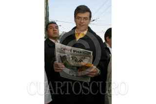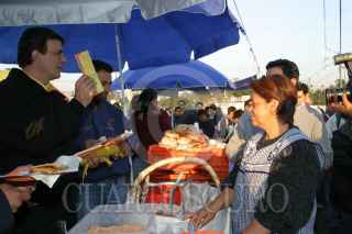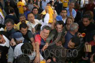 MEXICO, D. F. 18ABRIL2006.- Brigadistas del PRD durante la reparrtición de camisetas en la glorieta del metro Insurgentes. FOTO: Nelly Salas/CUARTOSCURO.COM
