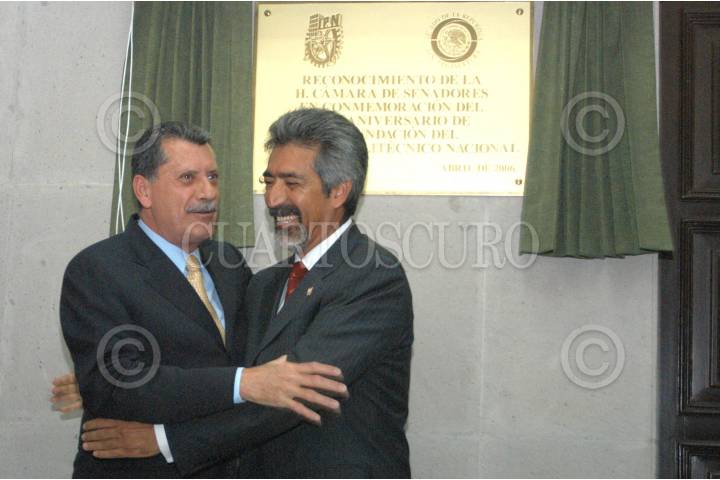 MÉXICO D.F. 18 ABRIL 2006.- Develación de la placa conmemorativa del 70 Aniversario del Instituto Politécnico Nacional. en el Senado de la República. FOTO: Guillermo Perea / CUARTOSCURO.COM