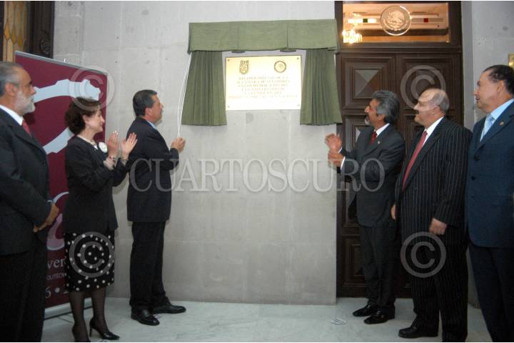 MÉXICO D.F. 18 ABRIL 2006.- Develación de la placa conmemorativa del 70 Aniversario del Instituto Politécnico Nacional. en el Senado de la República. FOTO: Guillermo Perea / CUARTOSCURO.COM