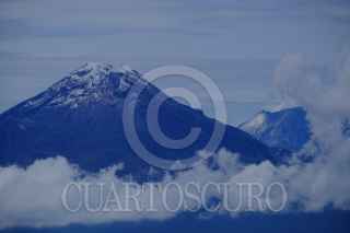 Texcoco, Estado de México, 16agosto2020.- Una panorámica del volcán Iztaccíhualt, la tercera montaña más alta de México, desde el Monte Tlalóc (Tlalocatépetl y zona arqueológica en la sierra de Río Frío y Texcoco). FOTO: PEDRO VALTIERRA /CUARTOSCURO.COM