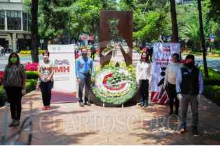 CIUDAD DE MÉXICO, 17AGOSTO2020.- El alcalde de Miguel Hidalgo, Victor Hugo Romo, coloca una ofrenda en el monumento al Rey Peatón en la colonia Polanco en el marco del Día del Peatón que se celebra cada 17 de agosto desde hace 100 años. En el Valle de México se realizan más de 5 millones de viajes a pie. FOTO: DANIEL AUGUSTO/CUARTOSCURO.COM