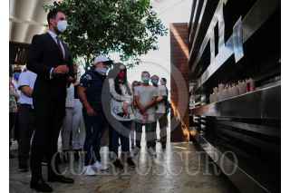 CIUDAD DE MÉXICO, 17AGOSTO2020.- Familiares de la niña Ancira, quien murió el pasado 17 de agosto de 2019 en el Centro Comercial Antara, realizaron una ofrenda en las instalaciones de ese lugar a un año de su muerte y que acusan a la plaza de negligencia y omisiones por parte de la administración y derivaron en la muerte de la menor. FOTO: DANIEL AUGUSTO/CUARTOSCURO.COM