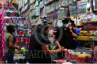 CIUDAD DE MÉXICO, 17AGOSTO2020.- Con la confirmación de las autoridades educativas de que el próximo ciclo escolar iniciará por medio de los canales de televisión debido a la pandemia de coronavirus que aún tiene a la mayoría de Estados del país en Semáforo Naranja, la venta de útiles escolares está a la baja arriesgando a cientos de negocios a no volver a abrir ante las reducidas ventas dando un estimado de 18 mil millones de pesos en pérdidas. En los negocios de la Plaza de Mesones se nota muy poca gente realizando compras y varios negocios cerrados. FOTO: DANIEL AUGUSTO/CUARTOSCURO.COM
