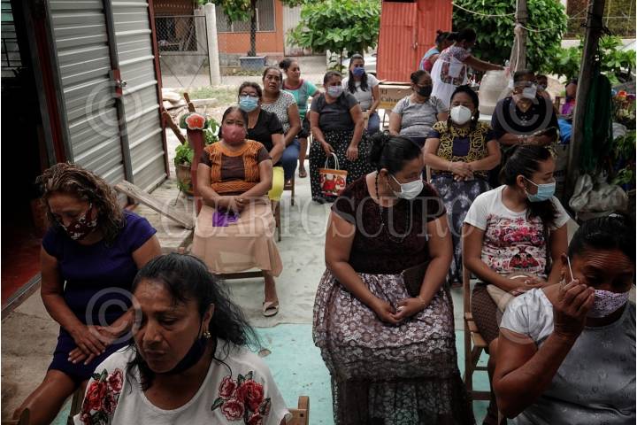JUCHITÁN, OAXACA, 18AGOSTO2020.- Tradicionalmente en Juchitán Zaragoza familiares y amigos conmemoran el primer año de fallecidas las personas, organizándose entre barrios para preparar comida, asistir a la misa en casa con un padre, repartir cazuelas con alimentos y bebidas para otras familias y escuchar música. La familia de Lazara tuvo que adaptarse a la conmemoración del primer año de fallecida de su madre la señora Cecilia a la nueva normalidad implementada como medida de sanidad por la crisis sanitaria global por el nuevo Coronavirus. Con un padre e invitados con cubrebocas y sugiriendo a los invitados retirarse después de la misa, se llevó a cabo pese pandemia en el barrio de la sección 7 de Juchitán, conocido como el más peligroso la conmemoración de Cecilia. FOTO: ANDREA MURCIA/CUARTOSCURO.COM
