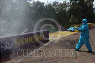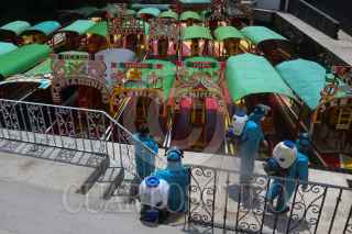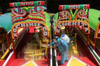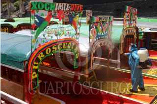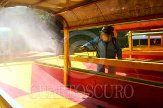 CIUDAD DE MÉXICO, 18AGOSTO2020.- Trabajadores de la alcaldía Xochimilco desinfectaron las trajineras del Embarcadero Nativitas debido a la reapertura para el público el próximo 21 de agosto. El acceso será de 12 personas y sólo laboraran 70 trajineras de las 219 que son en total. El horario será de 8 a 18 horas de lunes a domingo con un costo de $500 el recorrido. FOTO: GRACIELA LÓPEZ /CUARTOSCURO.COM