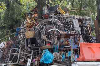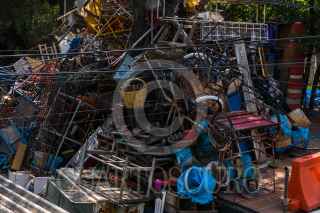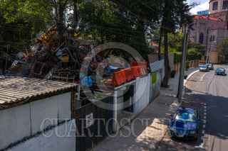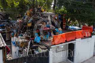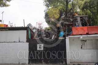 CIUDAD DE MÉXICO, 18AGOSTO2020.- En un depósito de la alcaldía Miguel Hidalgo, ubicado en Monte Altai en la colonia Lomas de Chapultepec, permanecen decenas de triciclos y estructuras metálicas de puestos semifijos. Hace un par de días el funcionario de la alcaldía Miguel, Hidalgo Hegel Cortés Miranda, informó en sus redes sociales que iban a ser destruidos. Tras una ola de críticas para esta medida, el alcalde Víctor Hugo Romo informó que estos vehículos iban a ser donados para asociaciones o mercados. Sin embargo usuario en redes sociales señalan que se deberían regresar a sus dueños ya que representan una herramienta de trabajo, esto en medio de la crisis económica que se vive por los efectos de la paralización de la economía por varios meses debido a la pandemia de Covid-19. El alcalde Romo señaló que hay una mafia que renta estos triciclos a muchos vendedores que tienen que pagar por usarlos y por los espacios en donde venden, además de matizar que todas estas unidades se han ido decomisando a lo largo de varios operativos de su administración y que hay muchos de ellos que llevan años en estos depósitos. FOTO: MOISÉS PABLO/CUARTOSCURO.COM