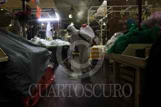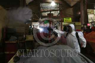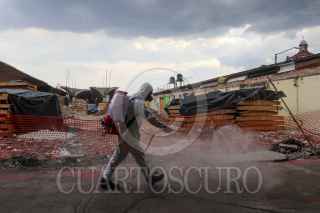 CIUDAD DE MÉXICO, 18AGOSTO2020.- Trabajadores de la alcaldía Venustiano Carranza desinfectaron los puestos de la Nave Menor y Nave Mayor del Mercado la Merced para no propagar más contagios de Covid-19 entre los comerciantes y clientes que transitan por el mercado. FOTO: GRACIELA LÓPEZ /CUARTOSCURO.COM