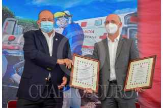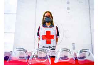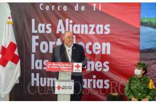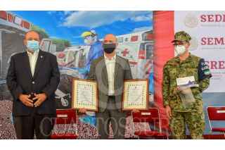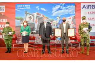 CIUDAD DE MÉXICO, 19AGOSTO2020.- La Cruz Roja en manos de su presidente, Fernando Suinaga Cárdenas, mascarillas de protección a integrantes del ejercito Mexicano. El evento tuvo lugar en la oficinas de la Cruz Roja de Polanco. FOTO: Especial/CUARTOSCURO.COM