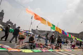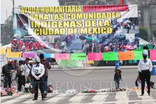 CIUDAD DE MÉXICO, 19AGOSTO2020.- Artesanos indígenas siguen manifestándose en el primer cuadro para que el gobierno capitalino los deje vender en esta zona de la ciudad, ya casi cumplen un mes de plantón. Policías capitalinos impiden a que la gente se acerque a comprarles ya que cuando algún comprador les hacen la indicación que no pueden pasar. FOTO: MOISÉS PABLO/CUARTOSCURO.COM